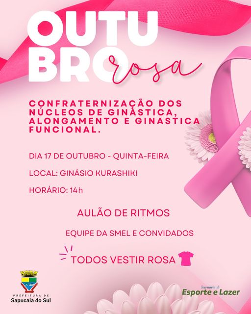 A Prefeitura de Sapucaia do Sul, através da secretaria de Esporte e Lazer, realizará uma ação especial chamada “Aulão de Ritmos Outubro Rosa”.