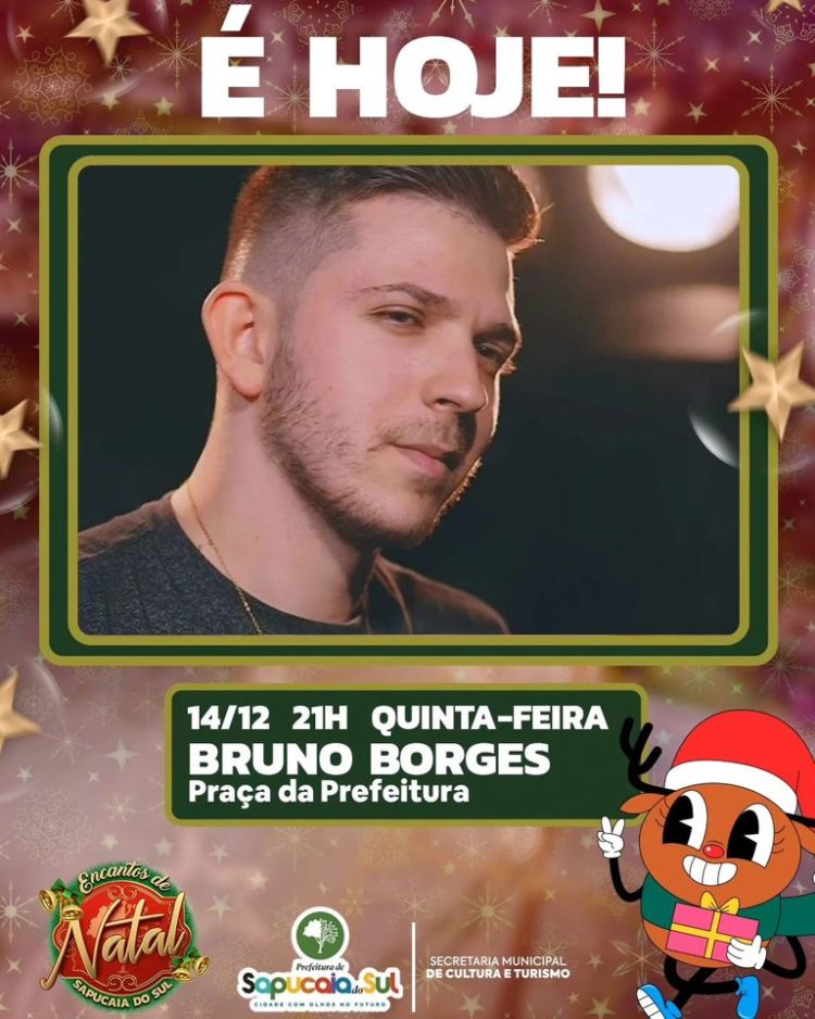 Hoje tem mais uma noite de Encantos de Natal! Às 21h Bruno Borges sobe ao palco para abrilhantar a festa!