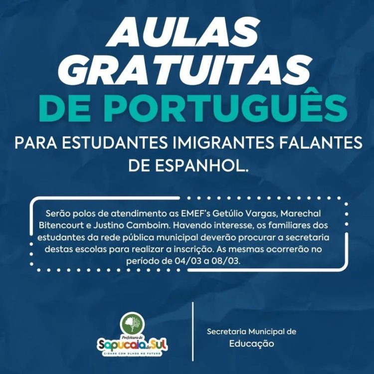 A Prefeitura de Sapucaia do Sul está com as inscrições abertas para aulas de Português para estudantes imigrantes falantes de espanhol, através da secretaria de Educação.