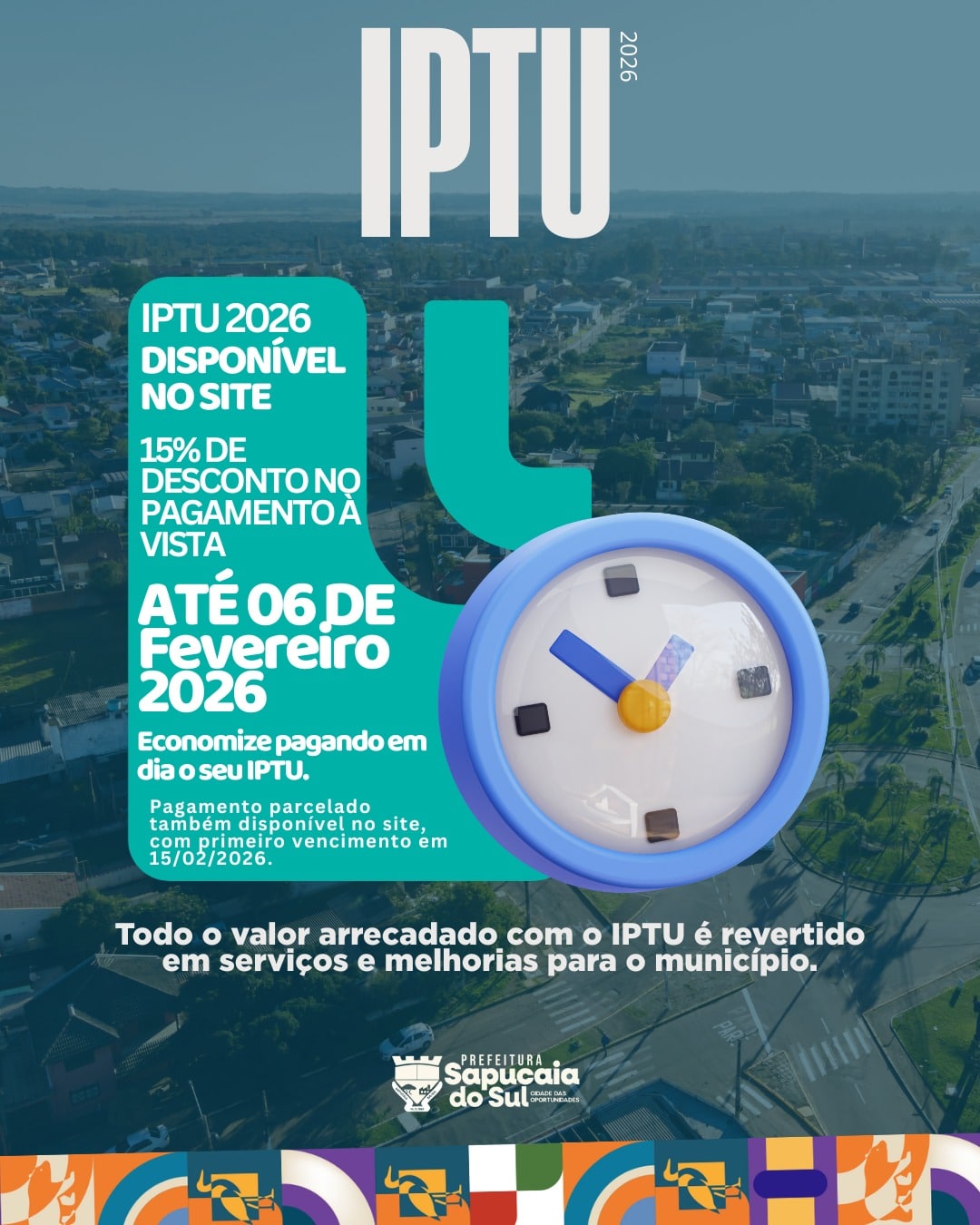 Todo o valor arrecadado com o imposto é revertido em serviços, obras e melhorias para o município.