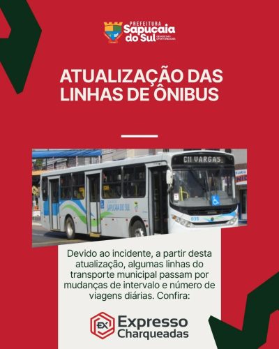 A Prefeitura de Sapucaia do Sul, por meio da Secretaria de Transporte e Mobilidade, informa alterações temporárias em quatro linhas de ônibus a partir de sexta-feira (21). As linhas L01 Colina Verde, L03 Jardim América e L10 Ipiranga terão redução de viagens e aumento dos intervalos nos horários de pico. A L18 Fortuna ficará paralisada por tempo indeterminado.