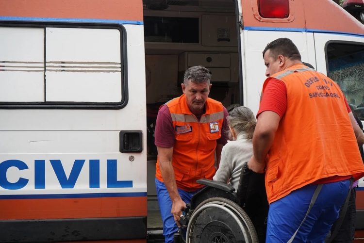 Na tarde desta quarta-feira (22), equipes da Defesa Civil de Sapucaia do Sul receberam mais um chamado de emergência, uma sapucaiense já idosa e acamada, estava com sua casa totalmente cercada pela água das chuvas, no bairro Fortuna. Os agentes prontamente se deslocaram até o local para a realização do resgate.