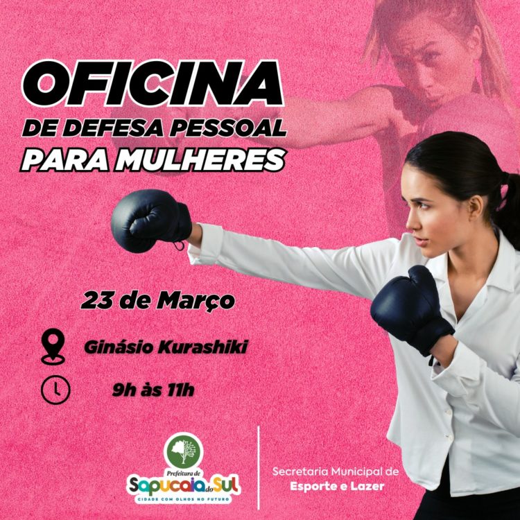 A Prefeitura de Sapucaia do Sul, através da secretaria de Esportes e Lazer, comunica a comunidade sapucaiense, que neste sábado (23), das 09h às 11h, ocorrerá a “Oficina de Defesa Pessoal” para mulheres.