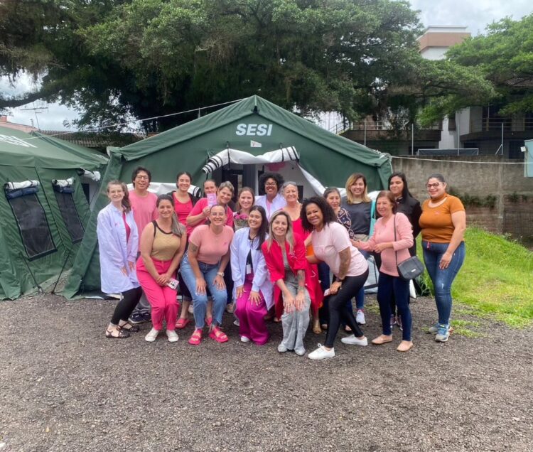 Nesta sexta-feira (25), foi realizada mais uma atividade em conscientização sobre a prevenção do câncer de mama e autocuidado pessoal em alusão ao Outubro Rosa. Uma conversa, coordenada pelas equipes de Saúde e Psicossocial das Tendas SESI, trabalhou os processos de identificação dos sinais precoces da doença, compartilhando experiências de tratamento e de busca por redes de apoio.
