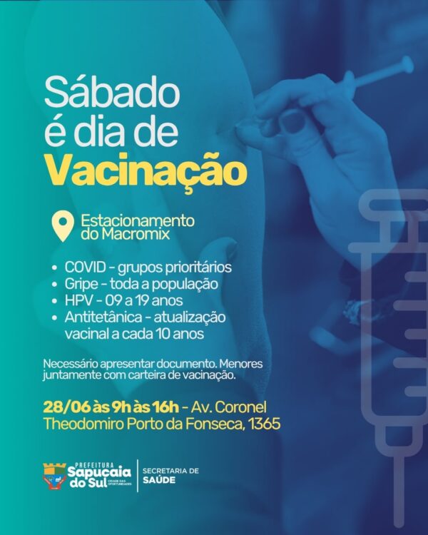 Neste sábado (28/06) ocorrerá ação de vacinação no estacionamento Macromix da av. Theodomiro Porto da Fonseca.