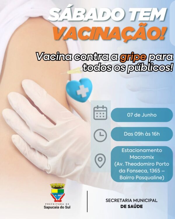 SÁBADO É DIA DE VACINAÇÃO CONTRA A GRIPE EM SAPUCAIA DO SUL!