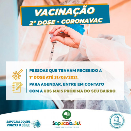 Nessa fase, serão priorizados àqueles que fizeram a primeira dose até a data de 31/03/2021.