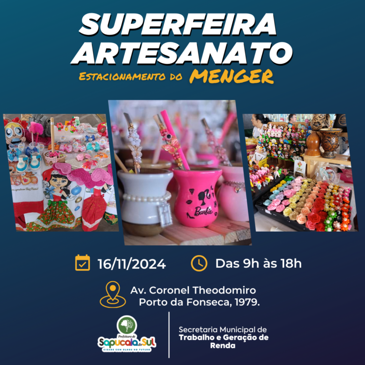Nesse sábado (16), ocorrerá mais uma edição da Feira de Empreendedorismo e Economia Solidária do município. O evento será realizado no estacionamento do Menger, localizado na Av. Coronel Theodomiro Porto da Fonseca, 1979.
